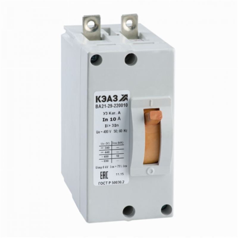 Выключатель автоматический ВА21-29-220010-10А-3Iн-400AC-У3-АЭС-КЭАЗ