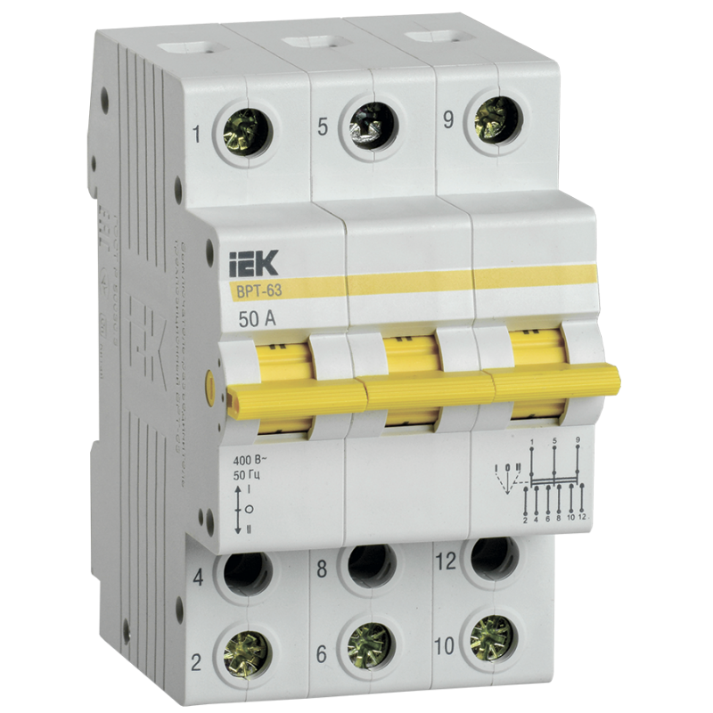 Выключатель-разъединитель трехпозиционный ВРТ-63 3P 50А IEK