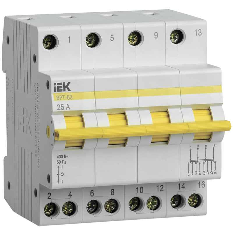 Выключатель-разъединитель трехпозиционный ВРТ-63 4P 25А IEK
