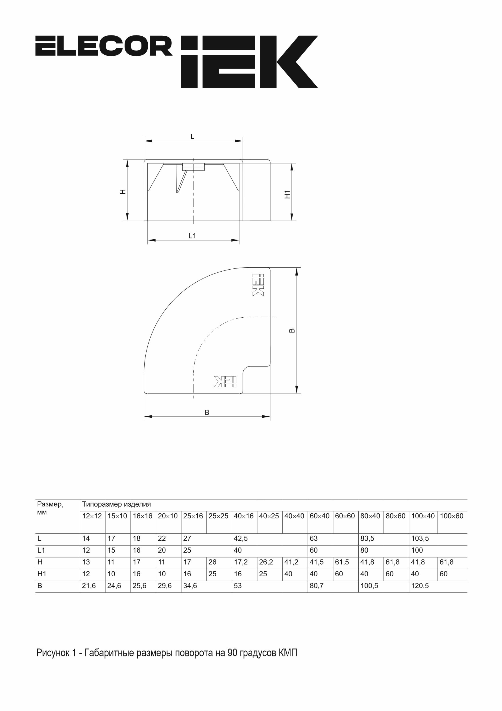 ELECOR Поворот 90град КМП 100х60 черный (2шт/компл) IEK
