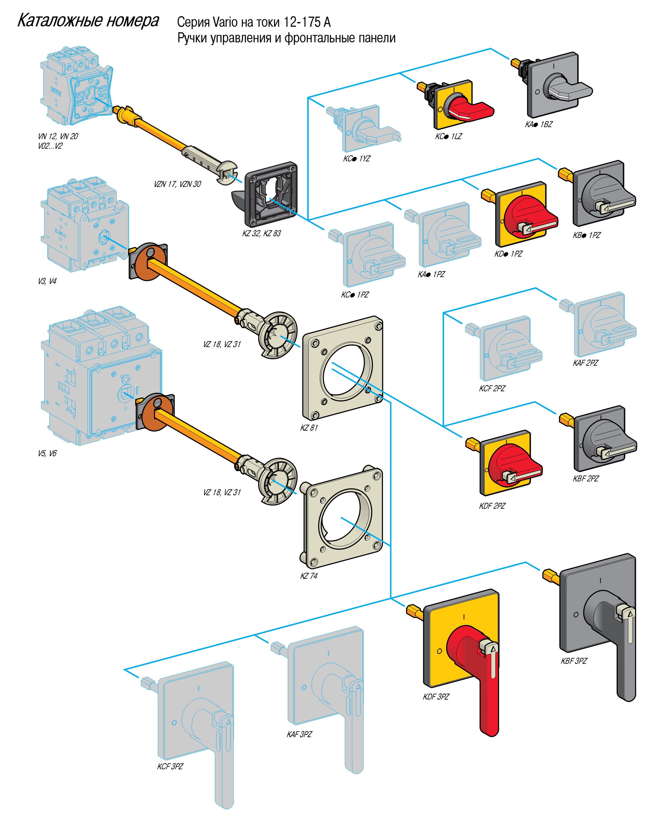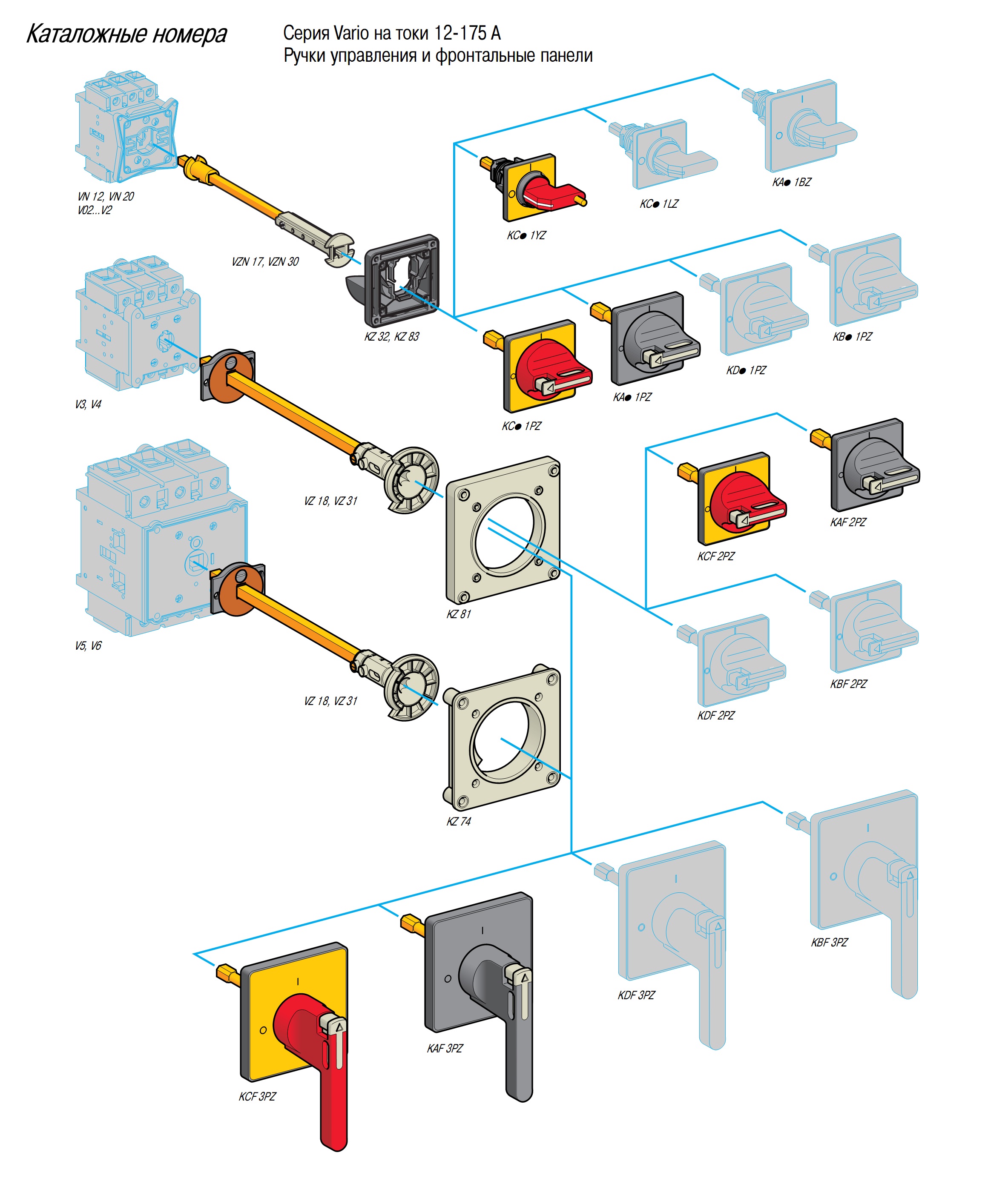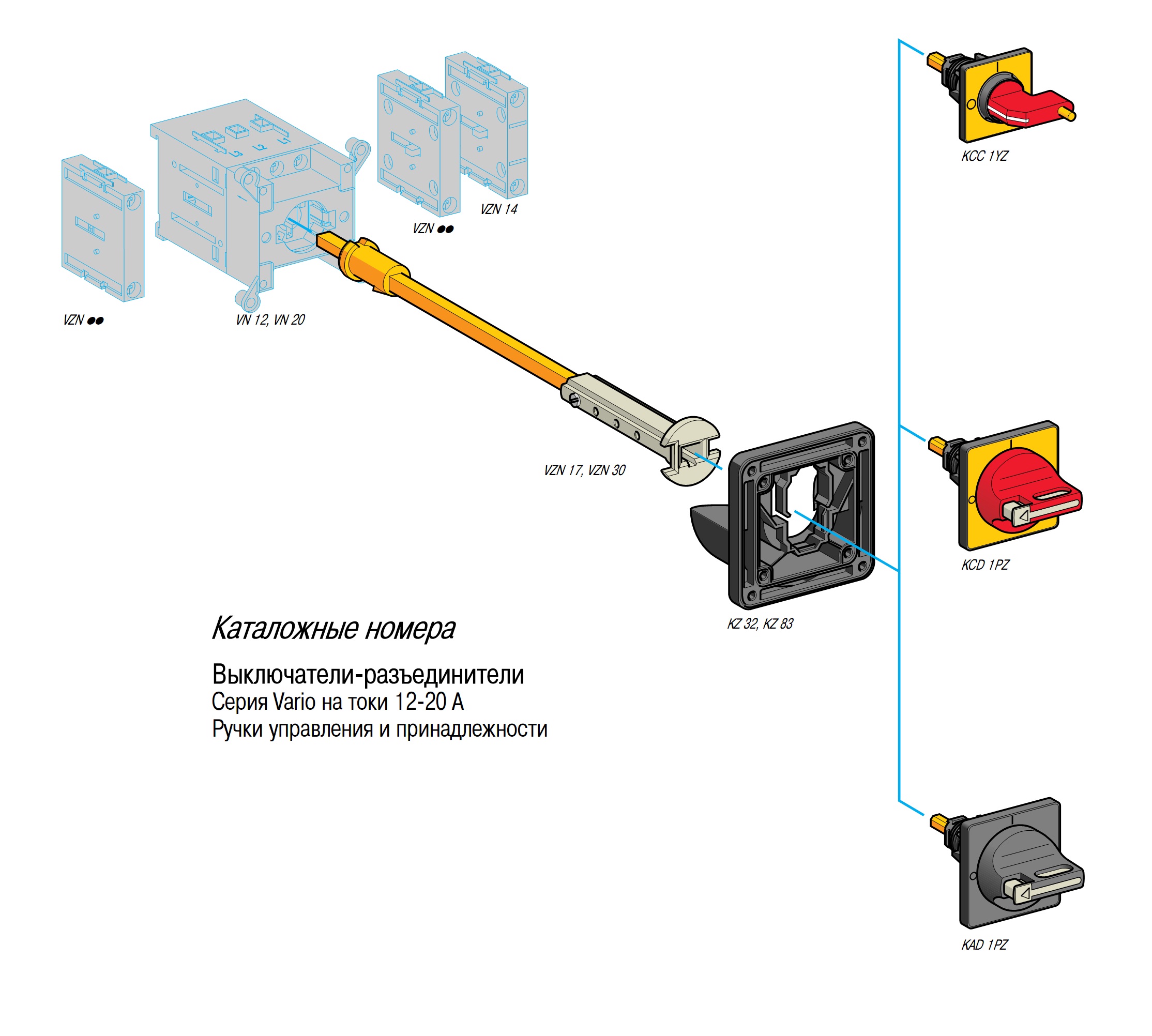 Выключатели-разъединители Vario и Mini Vario предназначены для коммуникации силовых электрических цепей активной или смешанной нагрузки и рассчитаны на токи от 12 до 175 А. Выключатели–разъединители Vario также могут использоваться для коммутации двигательной нагрузки, категорий применения AC–3 и DC–3. Они могут быть использованы в качестве главных и аварийных выключателей. Включение и отключение аппарата производятся поворотом фронтальной рукоятки посредством.